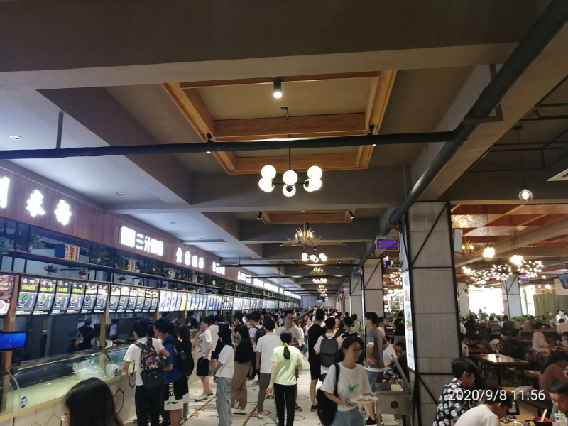 嘉園餐廳三樓位于河南科技大學(xué)開元校區(qū),南鄰關(guān)林路,北鄰開元大道,東臨學(xué)府街,西接周山大道。東南緊鄰洛陽新區(qū)三院,東北緊靠體育公園,交通便利,周邊的服務(wù)設(shè)施配套齊全。校區(qū)歷史悠久,校內(nèi)綠樹成行,環(huán)境優(yōu)美,餐廳內(nèi)部裝修簡單時(shí)尚,空調(diào)暖氣等基礎(chǔ)設(shè)施配備完善,功能區(qū)就餐區(qū)布局合理,食堂面積3800m2 ,整層餐廳功能性布局合理而豐富,東南角為餐廳自選餐區(qū)域,西北角為雅座休閑區(qū)域,中間為大廳就餐區(qū),南面電梯位置布置有高凳高椅的茶吧休閑區(qū),西側(cè)還有自動(dòng)升降電梯。餐廳內(nèi)部布置有多彩燈光,各個(gè)功能區(qū)還布置有書架和放置綠植的雅格 ,環(huán)境優(yōu)雅而舒適,共設(shè)置窗口數(shù)量35個(gè),餐桌200余張,分別經(jīng)營漢堡、麻辣香鍋、陶香雞、無名包子、麻辣燙、蓋澆飯等眾多特色小吃,備受學(xué)生喜愛。