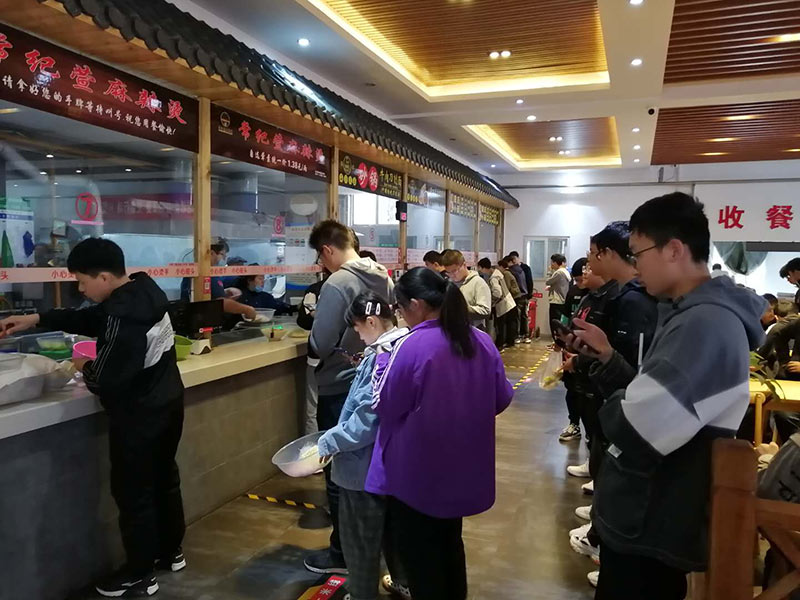 河科大職工飯?zhí)茫拼箫執(zhí)茫┪挥诤幽峡萍即髮W(xué)西苑校區(qū)北苑,主要針對(duì)學(xué)生和退休老干部的日常用餐,餐廳內(nèi)部設(shè)施均按標(biāo)準(zhǔn)化食堂配置,規(guī)劃合理,設(shè)備設(shè)施齊全,食堂面積1500平,目前有15個(gè)售飯窗口,分別經(jīng)營(yíng)不同的特色美食;科大飯?zhí)弥惺皆O(shè)計(jì)風(fēng)格搭配灰色大理石地面,簡(jiǎn)潔的線條,溫和的燈光與淺色木質(zhì)家具元素形成鮮明色彩對(duì)比,融合了多種氛圍,熱情、清新、舒適,明亮的感覺,為用餐的客人帶來(lái)熱情的氛圍,讓顧客在餐廳用餐時(shí),如沐浴在春風(fēng)一樣的心曠神怡,不僅是味覺能享受到美味,身心也享受到雅致的環(huán)境。
