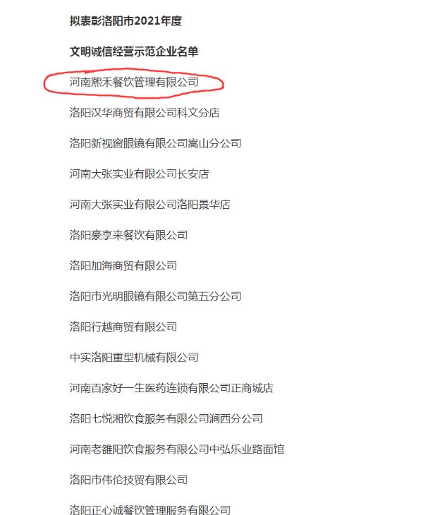 根據(jù)河南省文明辦、河南省市場(chǎng)監(jiān)督管理局及洛陽(yáng)市委宣傳部、市文明辦、市市場(chǎng)監(jiān)督管理局關(guān)于2021年度文明誠(chéng)信創(chuàng)建工作部署,在各縣區(qū)委宣傳部、文明辦、市場(chǎng)監(jiān)督管理局評(píng)選、推薦的基礎(chǔ)上,經(jīng)過洛陽(yáng)市市場(chǎng)監(jiān)督管理局的認(rèn)真審核,嚴(yán)格把關(guān),更終河南熙禾餐飲管理有限公司成功入選2021年度洛陽(yáng)市“文明誠(chéng)信經(jīng)營(yíng)示范企業(yè)”名單,這對(duì)我們熙禾餐飲來(lái)說,既是一項(xiàng)榮譽(yù)和認(rèn)可,也是一種鞭策和動(dòng)力。在此,也要感謝上級(jí)有關(guān)部門對(duì)我們工作的認(rèn)可,我們也會(huì)始終如一地繼續(xù)堅(jiān)持“誠(chéng)信經(jīng)營(yíng)”的理念,為我國(guó)構(gòu)建誠(chéng)實(shí)守信的大環(huán)境盡上自己的一份綿薄之力!
